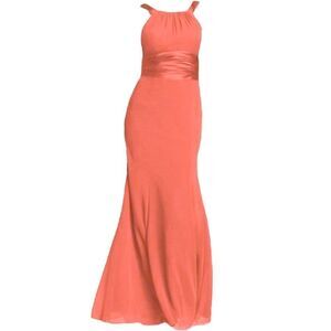 DAVIDS BRIDAL | Bridesmaid Wedding Guest Dress Chiffon and Charmeuse Persimmon 4