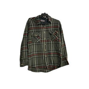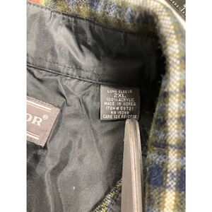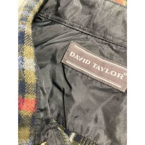 DAVID TAYLOR, Men’s Plaid,2XL, Shirt, Green, Long cuffed sleeves, button down, 100% Acrylic, but feels like wool, machine wash, Double Breasted Button Pockets. Sleeves are measured from middle of neck, and from armpit. See pictures. Back is longer than front. Please see approximate measurements in pictures before purchasing. Use your own judgment as to the fit. Send me an offer. I will either accept or counter! W1,20, warm, comfy, western style, cozy, warm, lumberjack look.