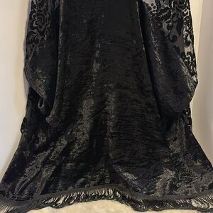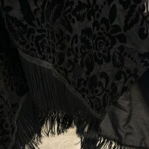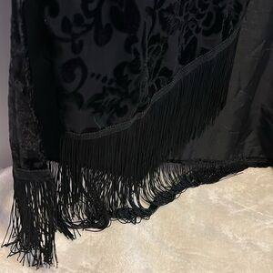 DAVID&YOUNG BLACK CRUSHED VELVET WRAP WITH ROSE&MESH DESIGN ON FRONT WTH FRINGE