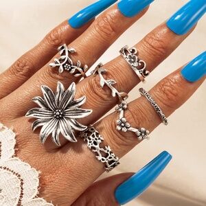 **DAVINA* 7-Pc Silver x Flower Fashion Ring Set