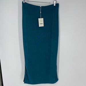 Try our Davina Maxi Skirt for transitioning into spring. This skirt features a 15" leg slit on both sides and a stretch ribbed material. The taupe color will compliment almost any top you pair this with.