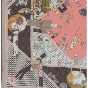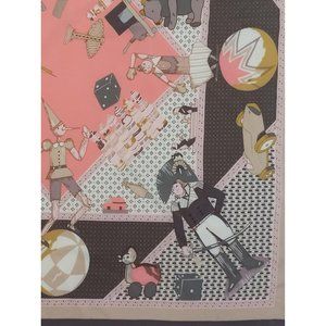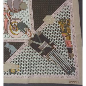 DAVINCI Black & Pink With Art Print Silk Scarf 35"/ 32” EX COND