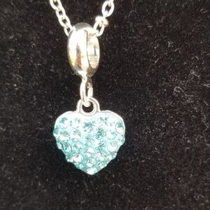 Cute silvertoned necklace by Davinci has a little silvertoned birthstone heart pendant with blue glass crystal rhinestones for the month of March. Pendant stamped Davinci on back. Necklace measures 18-1/4 inches in total length.