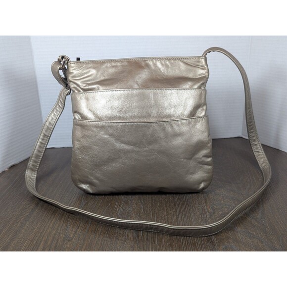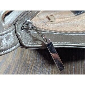 DAWLI Leather Crossbody Purse Handbag Metallic Gold Zip Closure Pockets USA Made