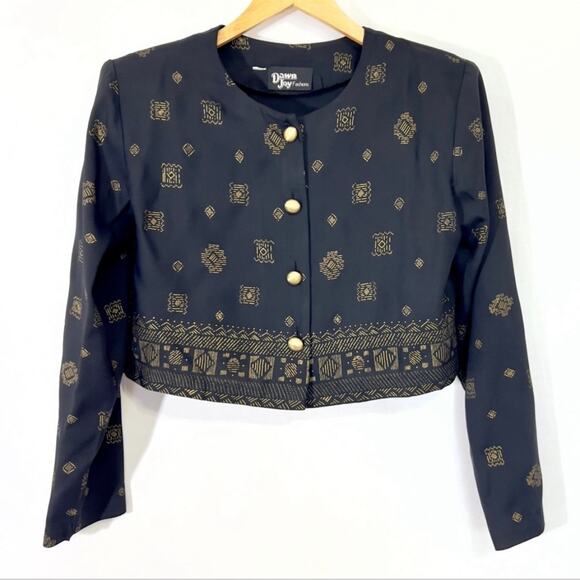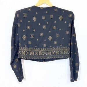 DAWN JOY Vintage Patterned Cropped Blouse Button Down shirt size S/M
