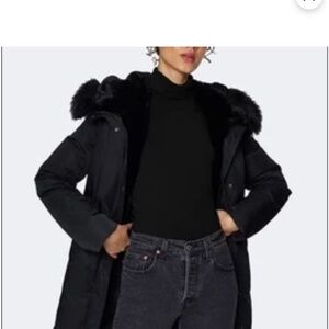 The DAWN LEVY LUNA DOWN COAT is made in a water resistant alpine finish, the piece is durable yet incredibly stylish. Finished with luxe features like bold side zippers, velvet trimming and a detachable faux fur hood with fox fur trim, this jacket is where fashion and function intersect. * Size Medium (6-8) US *Water and wind resistant * Front two-way zip closure with snap front * Removable faux fur hood with Fox Fur (Finland) trim * Removable faux fur front facing trim * Side-zip detail with velvet combo panels * Zipper pockets with soft & cozy lining * Lining: 100% nylon