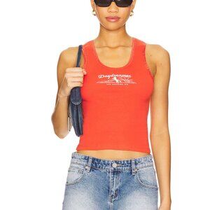 DAYDREAMER Daydreamer Studios Lace Trim Tank Top in Cherry Red Orange Medium M