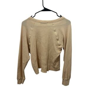 Embrace a vintage vibe with this Grateful Dead graphic thermal in a soft cream color. Perfect for casual outings. Long sleeves. Relaxed fit. Exposed seams. Raw hem. V neck.