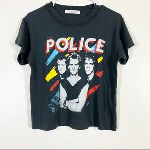 Daydreamer LA x Free People (also sold at Revolve) retro vintage style band tee. Painted style The Police graphic on front on a reverse seam Girlfriend Tee. Seams on collar and sleeves are intentionally exposed on the outside. Color is called Vintage Black. Size XS