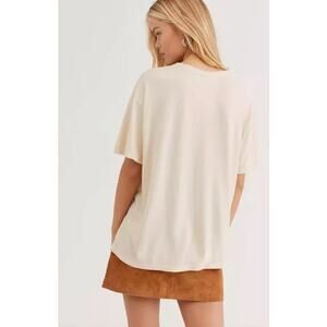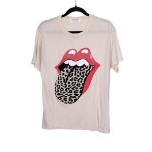 A classic Rolling Stones graphic print oversized tee in cream color background. Lightweight cotton blend fabric, crew neck, and short sleeves.