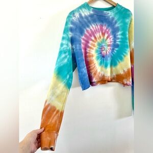 DAYDREAMER X Revolve Crop Psychedelic Tie Dye Long Sleeve Crewneck Cotton Sweatshirt