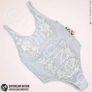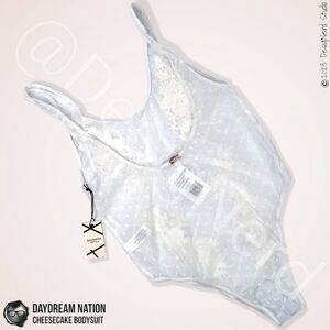 DAYDREAM NATION CHEESECAKE FLORAL APPLIQUÉ BODYSUIT IN WHITE VINTAGE LACE NWT