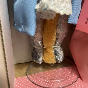 These are still in the original boxes and still attached to the boxes with original packaging. Nets still over the faces, padding still under the head, feet still wrapped, certificate still taped shut and accessories are sealed. They have never been taken out of the boxes. The boxes do show signs of wear. The wear is mainly to the tab that you pull out of the boxes. Other wear consist of rubbing on the edges of the box. Tissue paper inside that line the doll box had a sticker on the front to hold the tissue in place. I believe six< if not 7, of the stickers are still there. When the stickers were taken off, some of the tissues did receive wear. A couple of the boxes are faded.