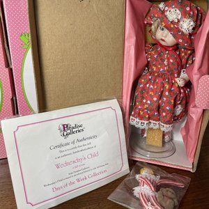 DAYS OF THE WEEK Porcelain Glass DOLLS Set Boxes Accessories Lot of 7 Vintage