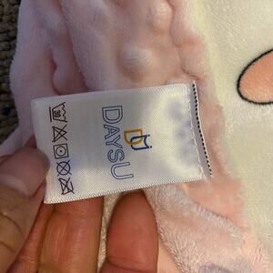 The product is a baby security blanket made by Daysu. It features a soft double-sided design with elephants and hearts print in pink and white. The blanket is made of fleece material and is easy to care for. It measures 30”x39” and is designed to fit a crib. The blanket is intended for girls and belongs to the Baby character family. It is manufactured in China.