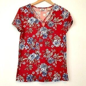 DAYTRIP BUCKLE Floral Strappy Top Red Blue White Short Sleeve Cutout Tee Small