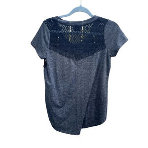 Pre owned. Worn a handful of times. Gray tee with studded design on front and lace detailing on back. WOMENS size small.