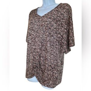 Cozy and stylish marled knit top by Daytrip. Features a flattering V-neckline, short dolman sleeves, and a front twist detail for added style. Lightweight, stretchy, and perfect for layering or wearing on its own. Like new!