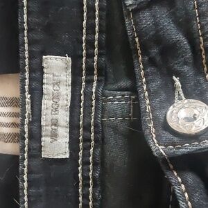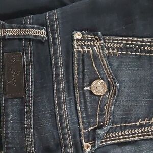 NWOT. Waist measures flat 17", rise 8", Inseam 34". Never worn. Pockets are really pockets, not just a Flap. Material is 98% cotton/2% spandex.