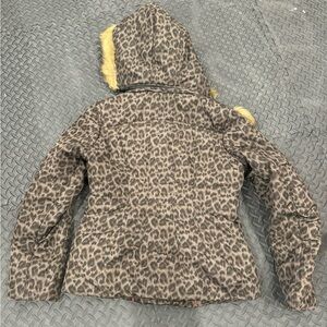 Selling this super cute Daytrip winter coat featuring a leopard print design and a faux-fur trimmed hood. Perfect for cold weather and adds a fun, fashionable touch to any outfit.