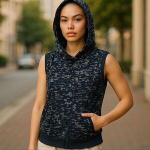 Daytrip Y2k Black and Grey Splatter Hooded Vest size Medium
