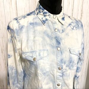 Daytrip Buckle tie dye snap front top. Wear sleeves down or roll up to 3/4 sleeves. 100% cotton. Light weight Double pockets on the front. Great with jeans or white shorts!! Excellent condition. Size medium. Approximate measurements pit to pit 18” length 25”