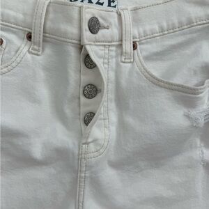 DAZE DENIM Dad High Rise Cuff Womens Off White Denim Shorts Size 25