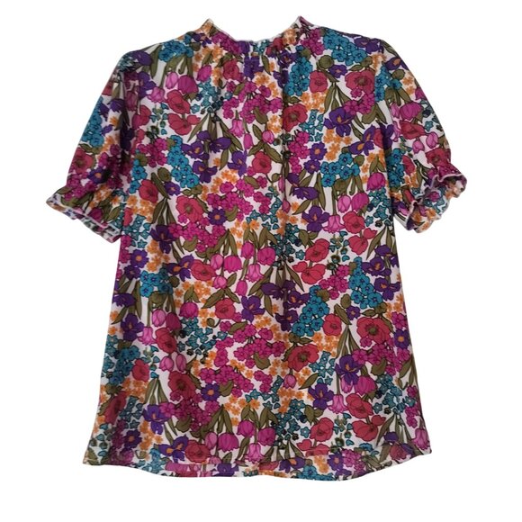 DAZIGN BLOUSE Short Sleeve White Floral Large Spring Flowy Romantic Office Core