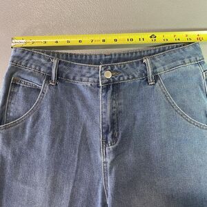 DAZY Jeans Wide Leg Baggy Fit High Rise Cuffed Denim Medium Wash Womens XL Blue