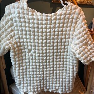 Elevate your style with this elegant cream textured top. Perfect for any occasion, this top offers a sophisticated look with its unique design.