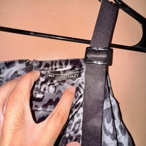 DAZY Women's Black Grey Cheetah Print Velour Shift Dress