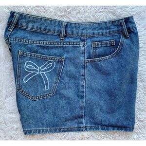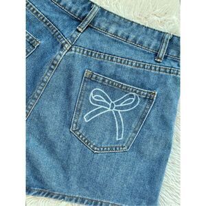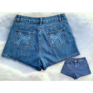 DAZY Y2K SZ L 8 Mid-Rise White Bow Design Pocketed Denim Shorts