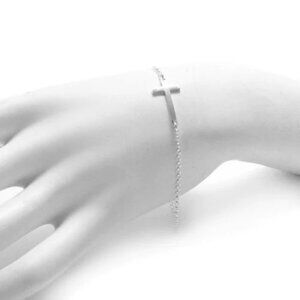 DAZZLING STERLING SILVER SIDEWAYS CROSS 8" BRACELET