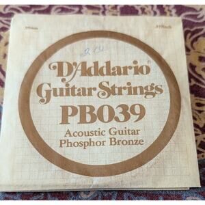 The D'Addario PB039 Guitar Strings are high-quality acoustic guitar strings made of phosphor bronze. With a focus on delivering a bright and balanced tone, these strings are ideal for acoustic guitar players looking for a durable and reliable option. Made in the United States by the reputable brand D'Addario, these strings are designed to suit the needs of acoustic guitar enthusiasts and deliver a rich and vibrant sound for their performances.
