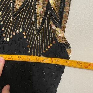 D'Albert Black Beaded Gold Sequin Silk Dress 80's Vintage Deadstock NWT Party