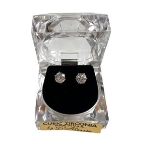 D'Alessio CZ Cubic Zirconia stud earrings in a gold-tone setting made for pierced ears. Made in the USA