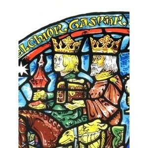 • Christmas Stained Glass, Three Kings, signed & numbered, Vintage, round, multicolored