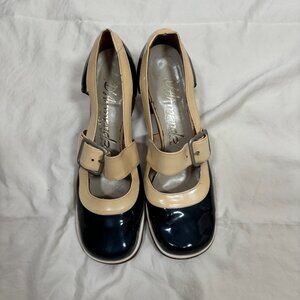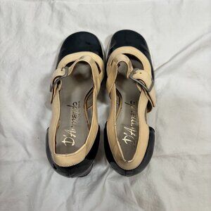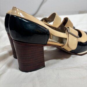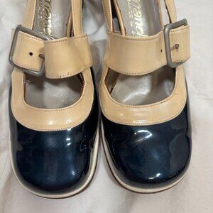 D’Armando Women’s Beige Black Leather Buckle Mary Jane Block Heel Shoes Size 8.5M