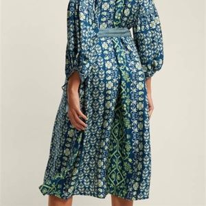 D'Ascoli Toscana Blue Silk Midi Dress sz S NEW