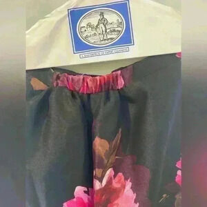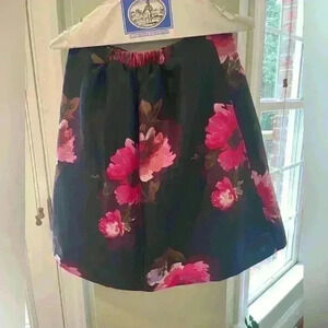 Beautiful black pink floral skirt flowy holiday classic preppy 100 percent polyester lined, 21 inches from waste line to hem line