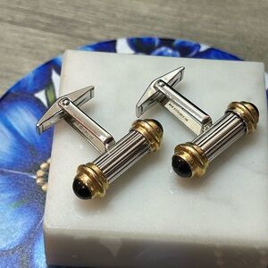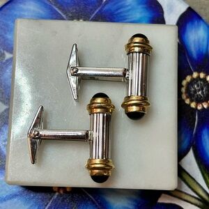 D&B Dolan Bullock Onyx 14Kt yellow gold 925 Sterling Silver Cuff Links #759 Vtg