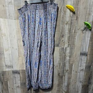 Details: all over print, smocked stretchy waist, lightweight, flowy, super soft and comfortable, no pockets, pull on