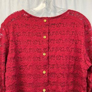 DB Established 1962 Womens Blouse Red Floral Lace Long Sleeve Lettuce Edge L