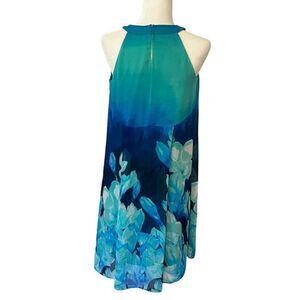 DB Established 1962 Beautiful Blue Floral Chiffon Dress. Sleeveless. Size 6.