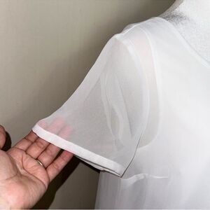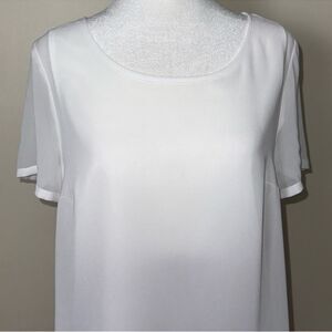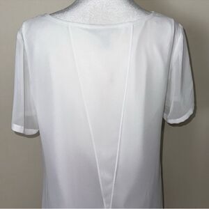 DB M White Sheer Split Back Lightweight Polyester Short Sleeve Top