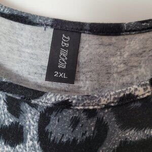 Leopard dress, long sleeve dress, plus size, DB Moon dress, rayon dress, spandex dress, elastic waist dress, pocket dress, animal print dress, casual dress, women's dress, gray black dress, 2XL dress
