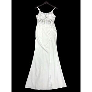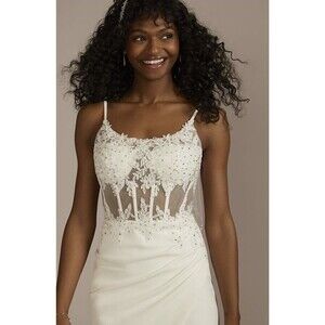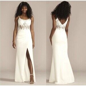 DB STUDIO Davis’s Bridal Illusion Corset Crepe Sheath Wedding Dress White Size 2