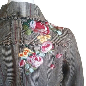 DB Sport Floral Embroidered Glenn Plaid Two Button Lined Blazer Size Small