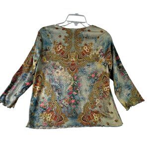 DB Sport Medium Floral Bohemian Long Sleeve V-Neck Top velour Casual Hippie Cute