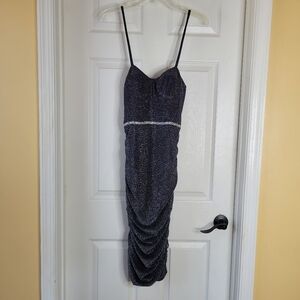 DB Studio Black Metallic Sweetheart Corset Midi Dress